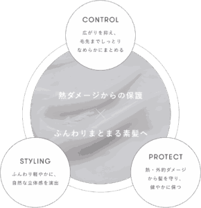 寝ぐせ直しにも使え、さらに、静電気抑制成分も入っているので広がりを自然に抑え、まとまりのある